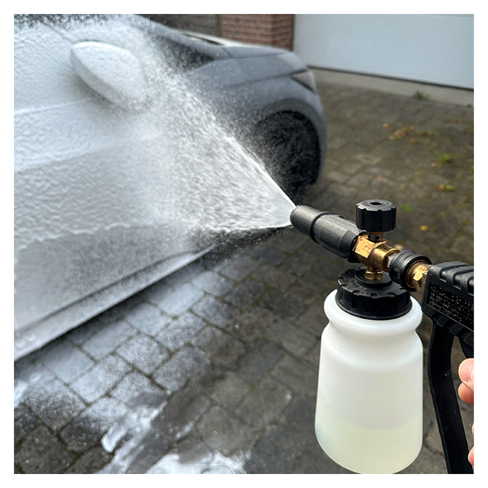 Den store 800 ml beholder giver rigeligt med skum til flere køretøjer ad gangen, og du kan nemt justere både skummængde og skumtykkelse direkte på lansen. Det gør det muligt at tilpasse skummet præcis til dit behov – fra en tynd pre-wash til et tykt lag foam.