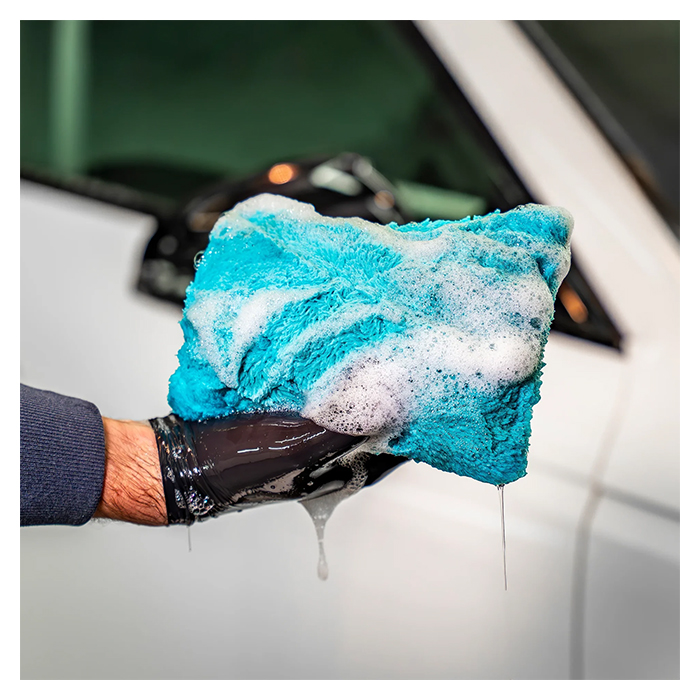 Soft99 High Performance Vaskehandske er en avanceret mikrofiberhandske, der kombinerer fordelene ved klassiske vaskesvampe og moderne mikrofiberteknologi. Det unikke, pudeformede design indeholder små skumceller, som absorberer shampoo effektivt og skaber et ekstra tykt, blødt skum – langt mere end traditionelle svampe.
