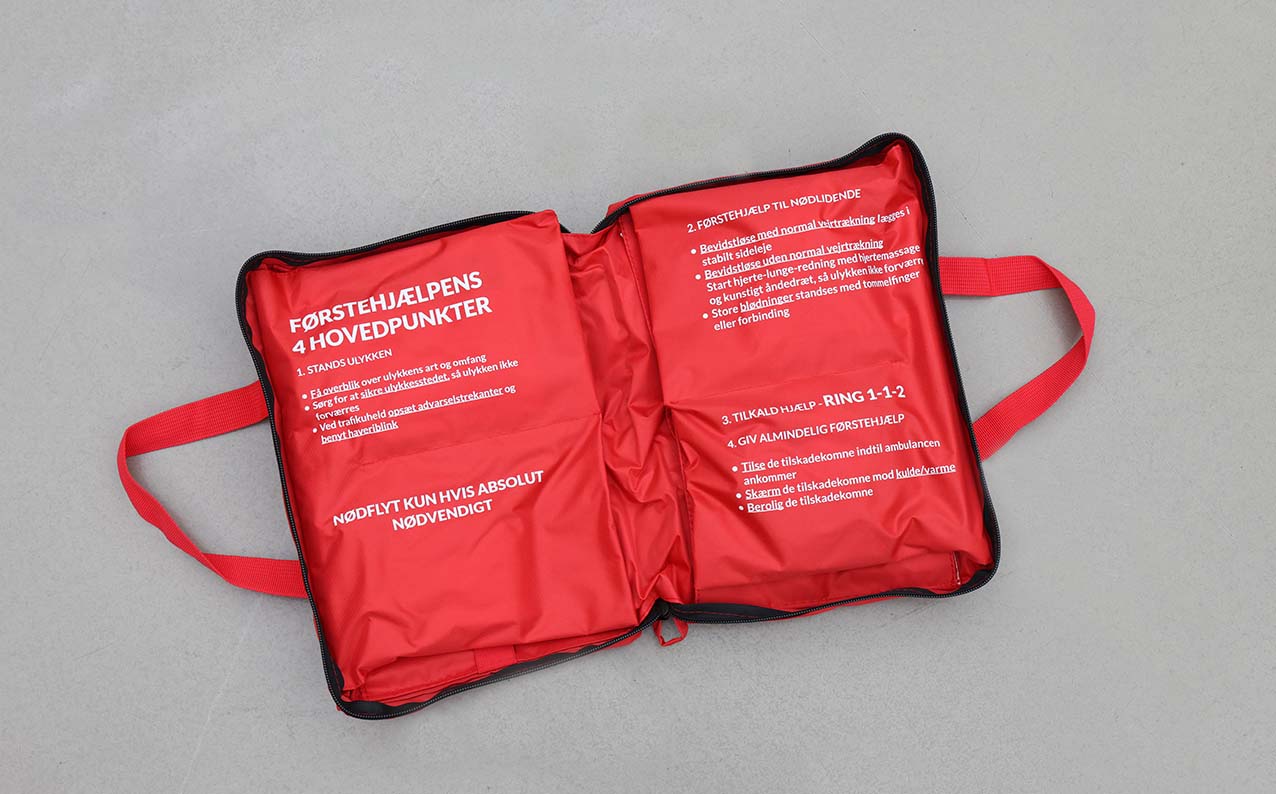 Førstehjælpstaske af høj kvalitet. Uundværlig, hvis uheldet er ude.