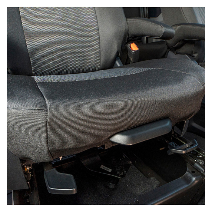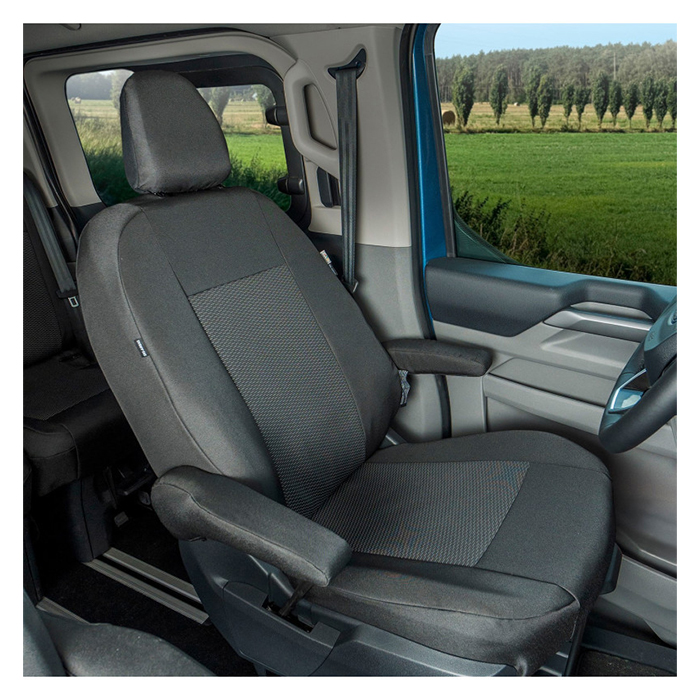 Overtrækkene beskytter bilens originale sæder mod slid, pletter og skader, samtidig med at de tilføjer et elegant og tidløst udtryk til kabinen. Det klassiske design i sort med en subtil grå struktur i midten skaber en harmonisk helhed, der passer til ethvert interiør.