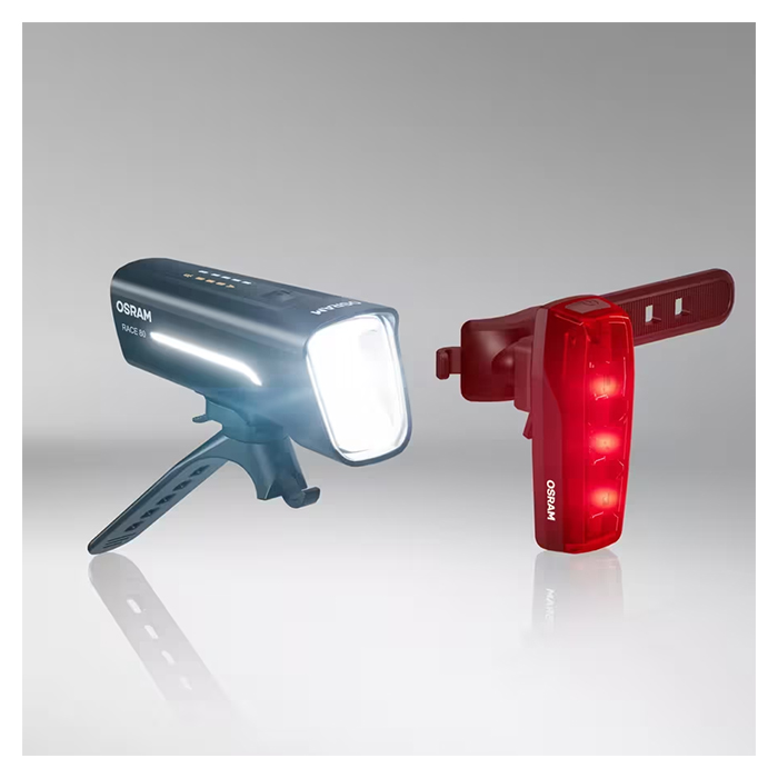 Den værktøjsfri 360° montering gør installationen hurtig og enkel, og det robuste ABS-hus med transparent polycarbonat-linse samt IP44-certificering beskytter mod regn og snavs. LEDsBIKE Race 80 Set er StVZO godkendt, K-mærket.