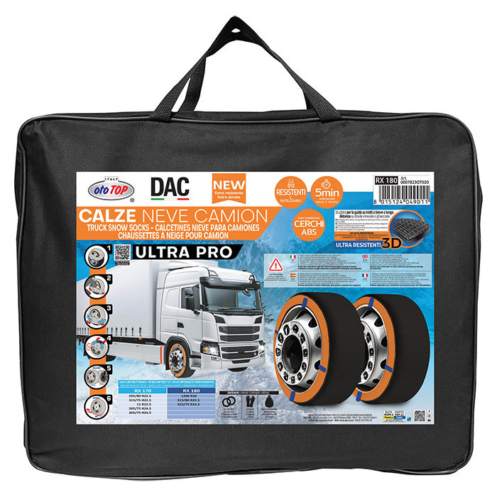 Ultro Pro Snesokker fra Maranello er en skridsikker sok til at montere på lastbilens dæk, når der skal køres på is og sne. Snesokkerne kan monteres på lastbilens drivhjul.