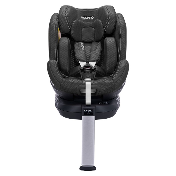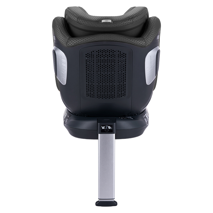 Stolen monteres nemt med ISOFIX og støtteben og roterer hele 360 grader, hvilket gør det let at placere barnet og spænde det fast – alt sammen med én hånd. Med ergonomisk struktur, blødt indlæg til nyfødte, effektiv ventilation og ekstra rummeligt siddeområde