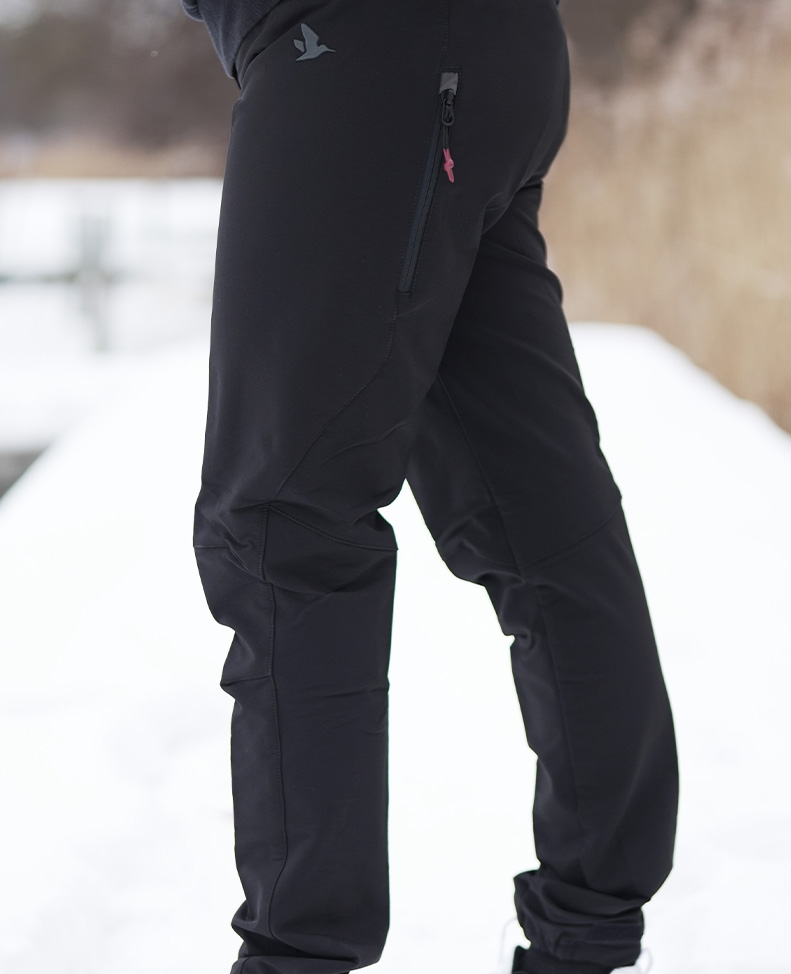 Bukserne har formskårne knæ, så buksebenene ikke kravler op, når du sætter dig på hug, de har elastik ved anklerne, så de sidder godt til omkring dit fodtøj, og du kan efterjustere dem ved anklerne med et velcrobånd.