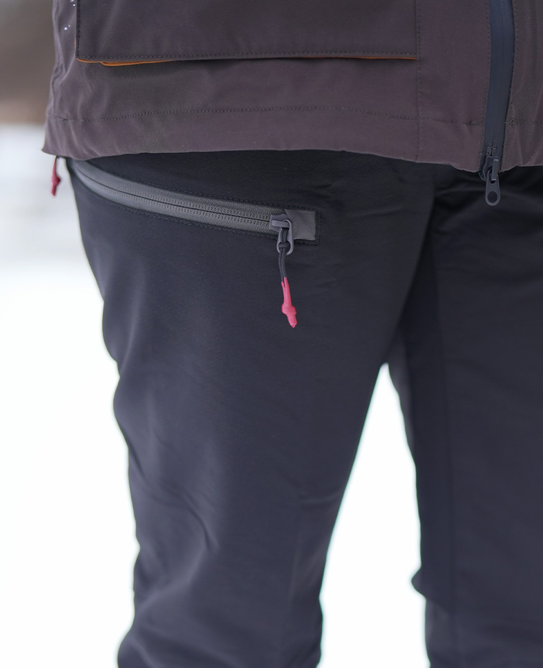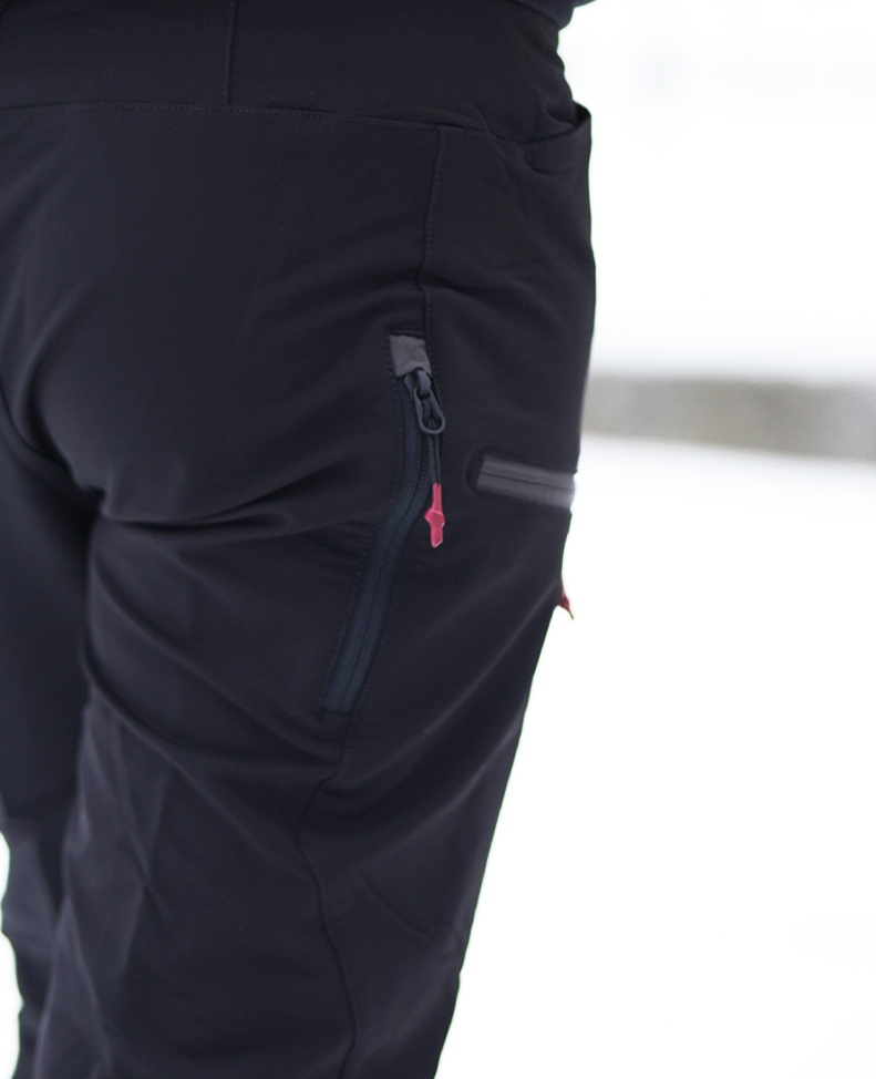 De har to åbne forlommer samt en rummelig lårlomme på højre lår med lynlås til dine forskellige ting. Bukserne har også elastik i livet, så de er virkelig behagelige at bevæge sig i, og i højre siden af linningen er der en D-ring til fastgørelse af en hundeline eller andet.