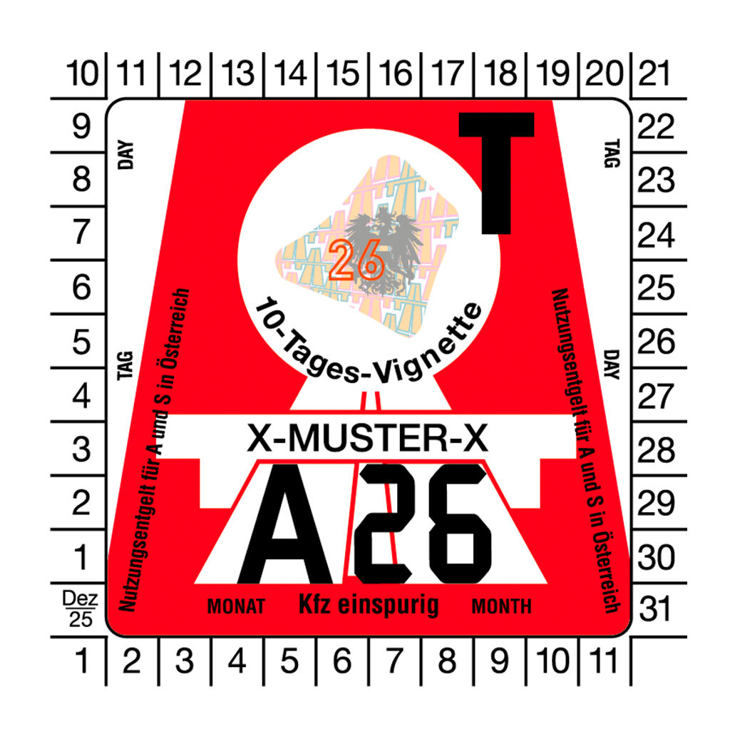 Motorvejsmærkat - også kaldet vignette - er til kørsel på MOTORCYKEL på de østrigske motor- og motortrafikveje i 10 dage.